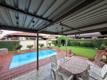 The entertainment area is a standout feature, boasting a built-in braai and sliding doors that open onto a covered patio overlooking the sparkling swimming pool and beautifully established garden. This space offers the perfect setting for relaxed afternoons, family gatherings, or entertaining guests.