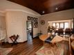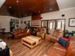 The open-plan layout seamlessly connects the kitchen, lounge, and TV room, creating a warm and inviting living space.